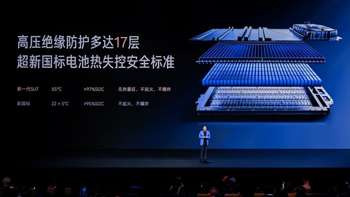 在电板安全上,新一代SU7电板包领有17层高压绝缘驻扎、1230多项严苛考据,何况升级了1500MPa防刮底横梁和底部防弹涂层,不错作念到行业最高的电板热失控安全循序。
