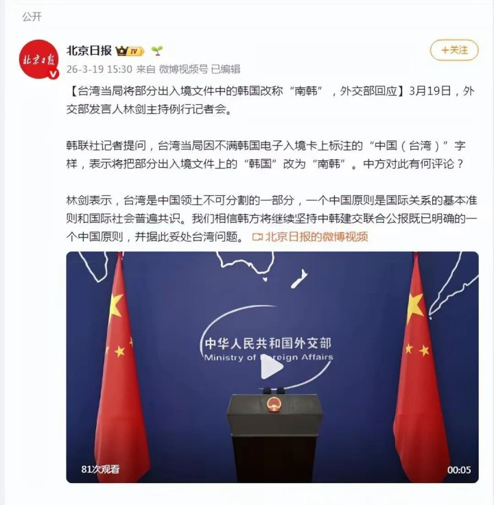 这即是分离。台当局的“反制”看起来挺狠——把“韩国”改成“南韩”,还设了时刻点。名义是平等,履行上更像厚谊宣泄。