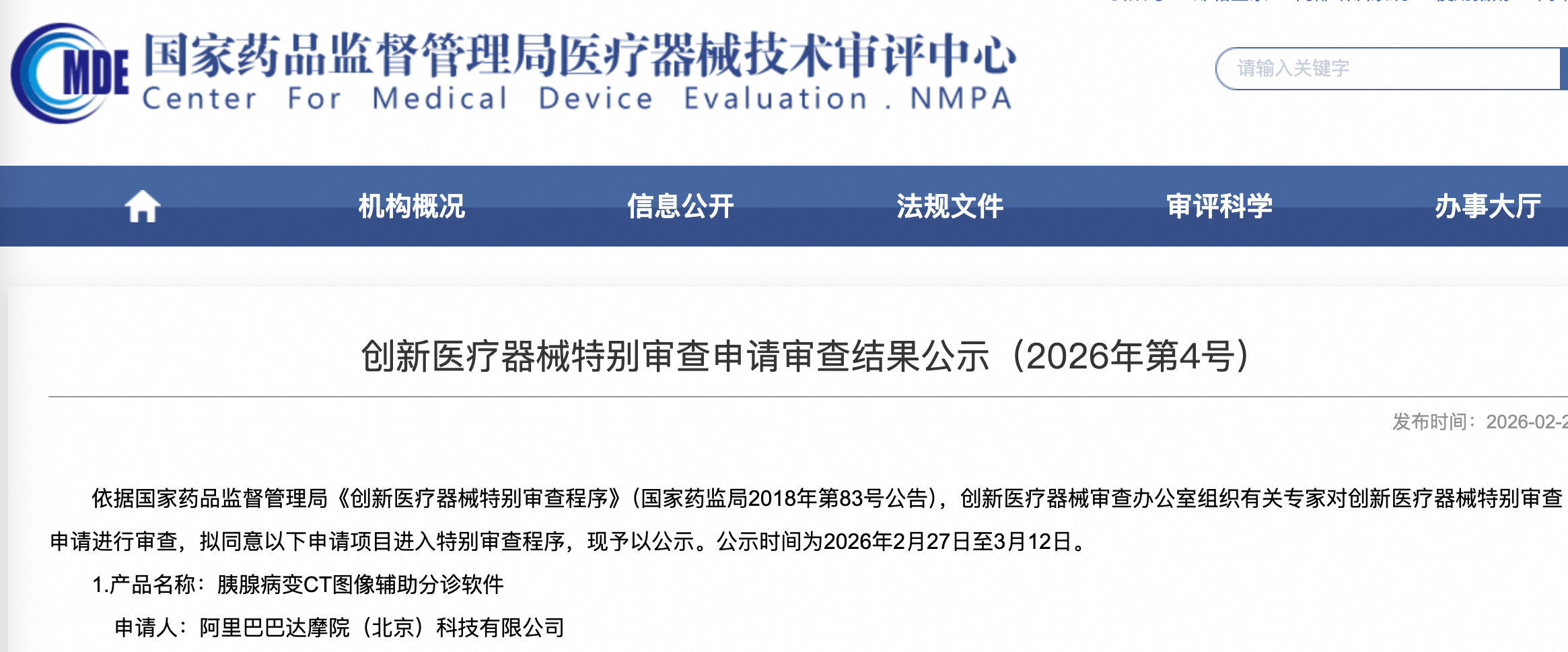 【环球网财经轮廓报谈】3月16日讯息,阿里达摩院研发的“胰腺病变CT图像支持分诊软件”DAMO PANDA慎重参加国度药品监督贬责局医疗器械时刻审评中心的转变医疗器械极度审查神色,那时刻草创性、提高性与临床价值得回泰斗认同。该产物可精确识别平扫CT影像中的微小胰腺病变,攻克了胰腺癌等胰腺病变快速分诊的海外艰难。