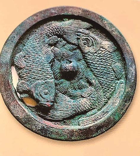 《淮南子·天文训》曰:“(立春)加十五日指寅,则雨水。”此时,气温回升,冰雪溶化,降水增加,故取名为“雨水”。雨水有三候:一候獭祭鱼,二候鸿雁来,三候草木萌动。春回地暖,递次回来。水獭将捕捉的鱼枚举岸边,仿若祭祀;大雁成群北归,一字横空;天地之交,草木随处中阳气升腾而偷偷破土抽芽。因此,鱼、鸿雁成了这个节气的标志性图纹,雨则是这个节气的见证。如和田出土的唐代陶鱼,静卧千年,潜跃之间似乎还有一场未落的春雨;又如昌吉出土的西辽双鱼铜镜,两条游鱼相互追赶,暗合阴阳调和之理,雨水相济之象,尽显陶然相遇之悦。