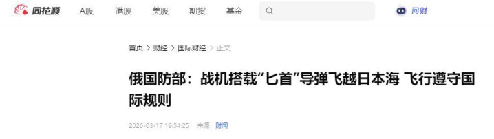 同花顺——2026年3月17日——俄国防部:战机搭载“匕首”导弹飞越日本海 航行投诚海外划定