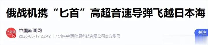 中国新闻网——2026年3月17日——俄战机携“匕首”细腻音速导弹飞越日本海
