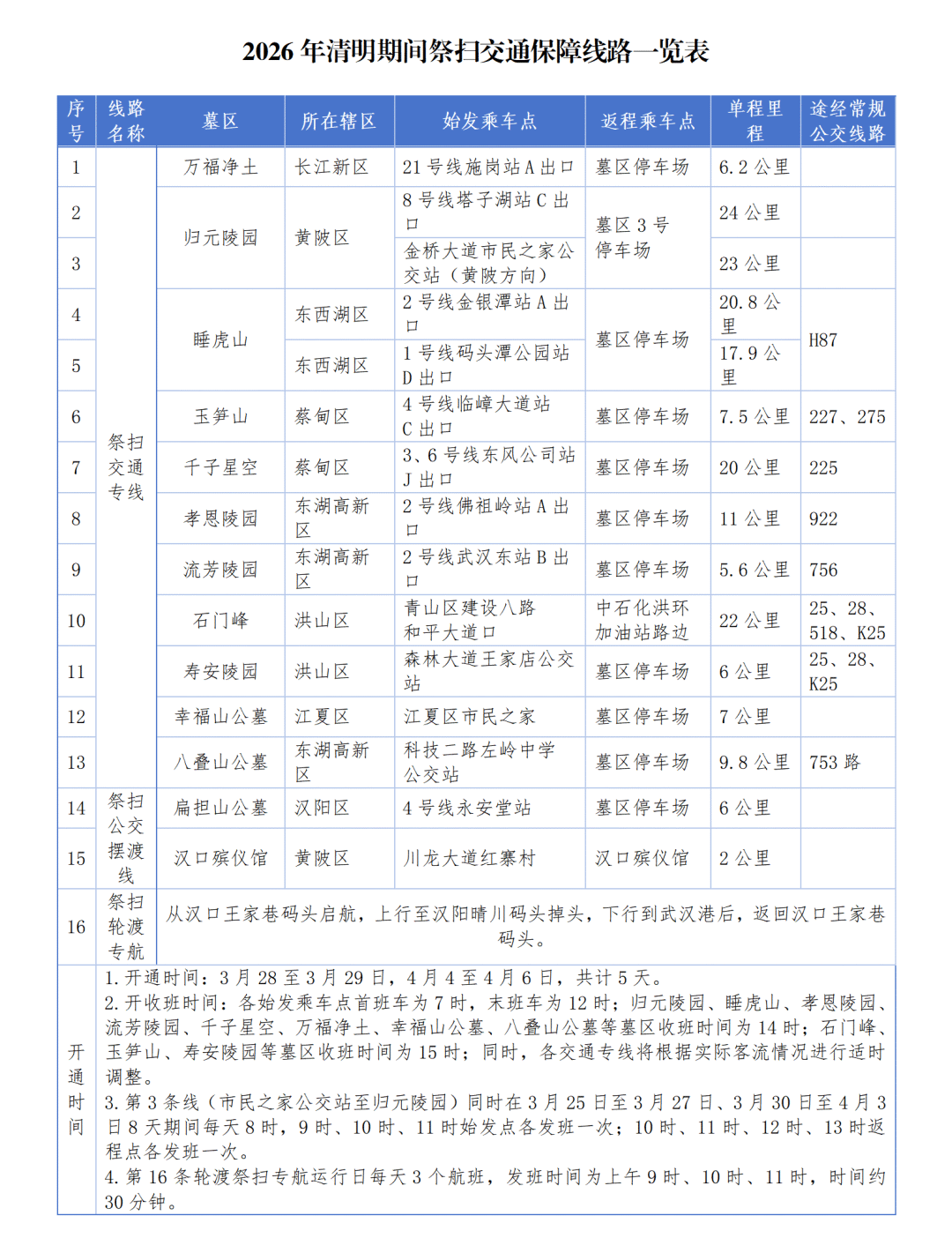 据了解,3月28日至29日、4月4日至6日所有5天开放祭扫交通专线,多座地铁车站进出口设有搭车点,乘客可乘坐地铁和公交前去: