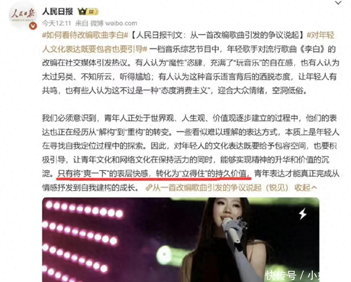 东谈主民日报早前就提过醒,别只顾着追求那种“爽一下”的上层快感,得有点立得住的抓久价值才行。可惜这话算是白说了,她非但没听进去,反而把魔改经典当成了博眼球的器具。李荣浩那句评价太扎心却又在理:不外是给书换了个皮,里头执行啥也没变。这种为了概括而概括的改编,除了透支歌手信誉,还能落下啥好?