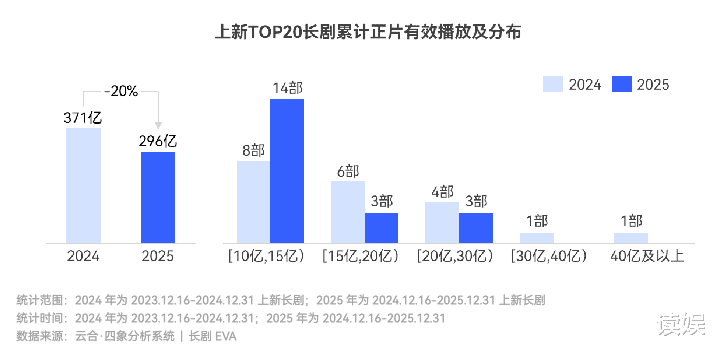 云合数据骄横,2025年上新长剧霸屏榜TOP20的正片有用播放同比缩减20%,全年未出现信得过意旨上的集均破亿超等爆款。微短剧的冲击、用户防御力的碎屑化,使得长视频的“爆款逻辑”濒临更大压力。