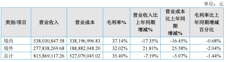 此外,在国内商场需求疲软的布景下,国外业务成为恒兴股份2025年标的的最大增长引擎。2025年,恒兴股份境外营收达2.78亿元,较2024年的2.28亿元同比增长21.81%,在总营收下滑的布景下杀青逆势高增;境外营收占总营收的比重从2024年的25.95%大幅升迁至34.05%,国际化策略落地告成显赫。