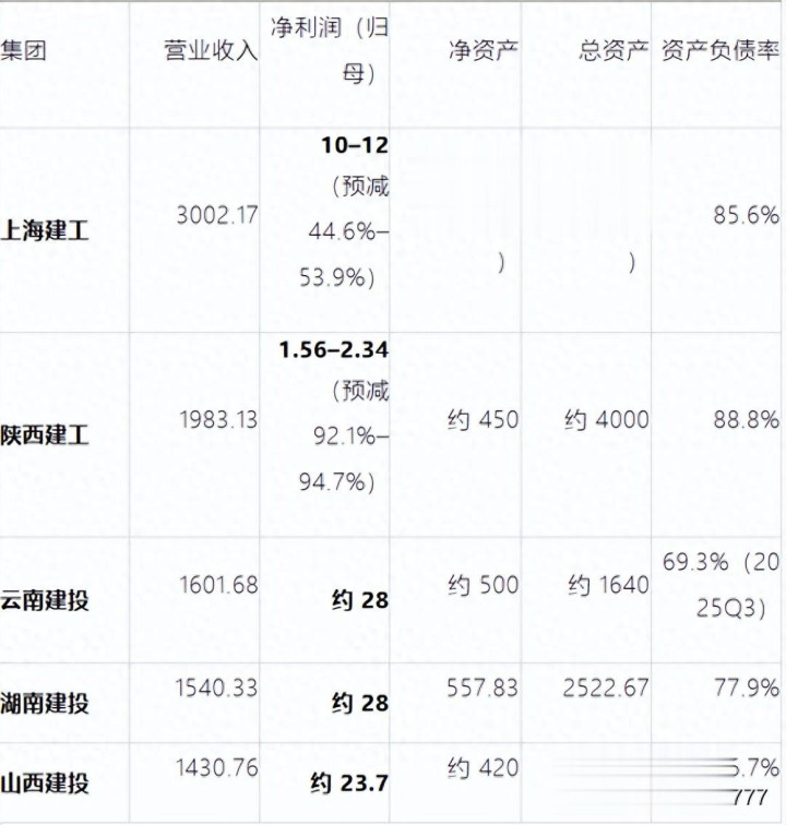 上海建工、陕西建工、云南建投、湖南建投、山西建投五家头部省级建工集团的2025 年中枢财务数据、2026 年主义、利润下滑原因及集团中枢上风对比(数据放手 2026 年 3 月)。