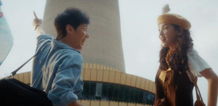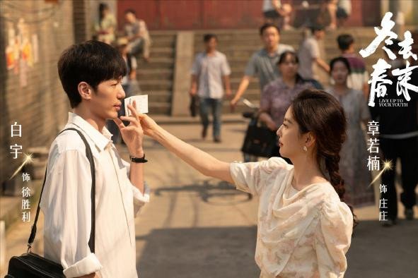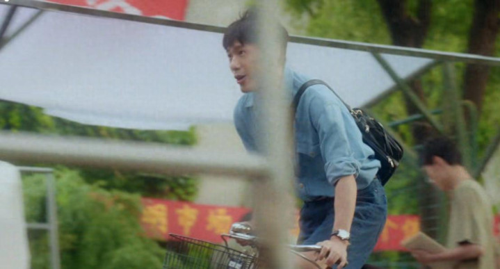 预报中,白宇衣裳衬衫、热枕壮志骑着二八大杠而来,就有股90年代热枕壮志的年代感。