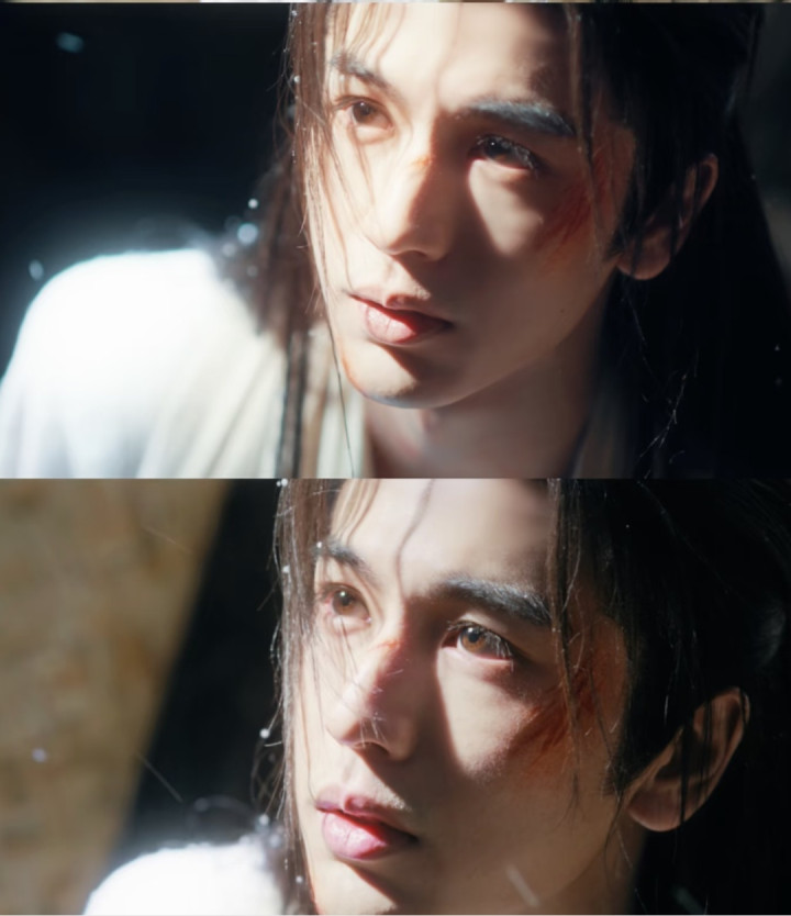 可当他渐渐抬眸,镜头特写之下,那双眼睛却清醒如寒星,凛凛似孤刃。