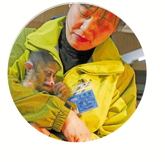 山魈宝宝比拟黏东谈主,可爱饲养员抱它