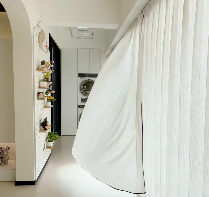 白日拉上窗帘能起到遮光作用,晚上还能隐敝苦衷,让阳台看着皆不是很拥堵。