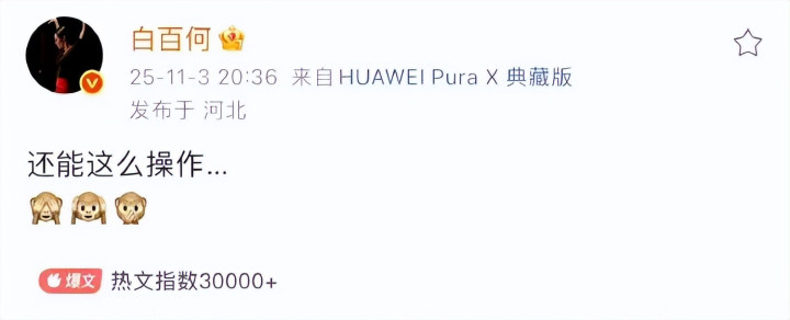 但饰演女主角的白百何,随后发了一条动态,配上了捂眼、捂耳、捂嘴的样式包,被各人看作念是抒发不悦。