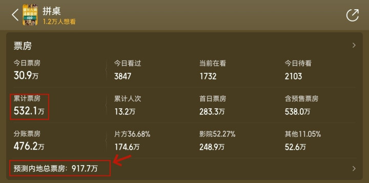 而平台展望,《拼桌》的最终总票房也不外917万。