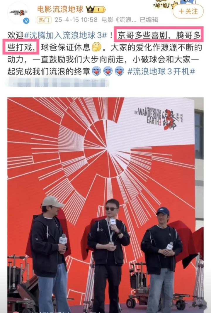 难怪吴京在开机典礼上开打趣说:“但愿我多些笑剧,沈腾多点当作戏,咱们互换一下。”
