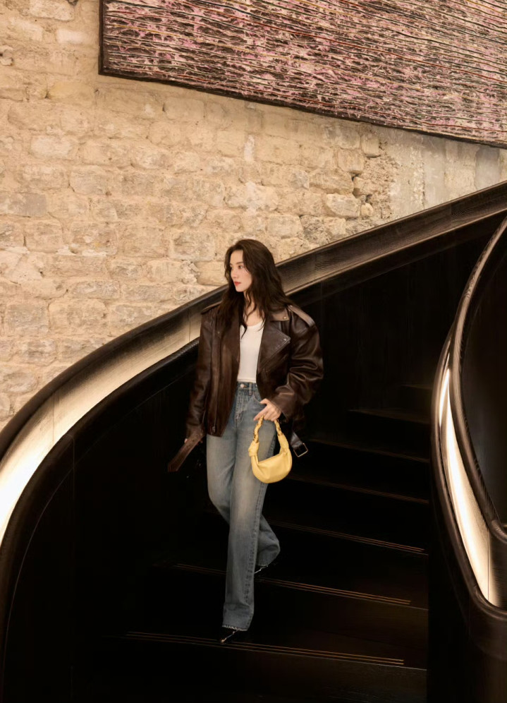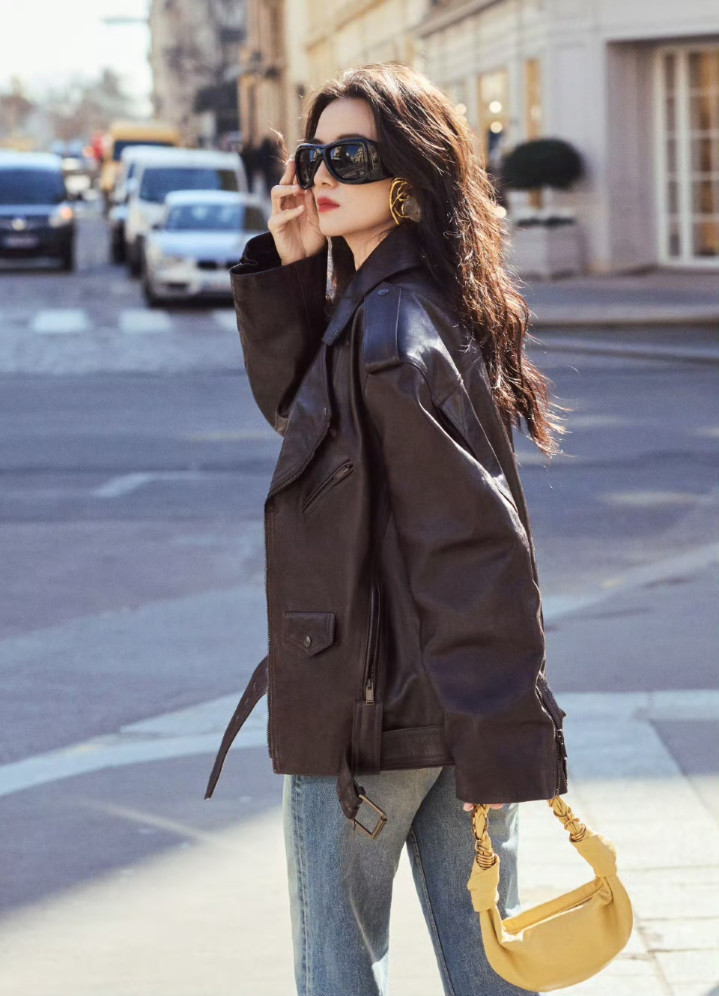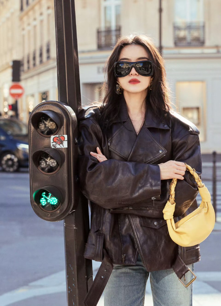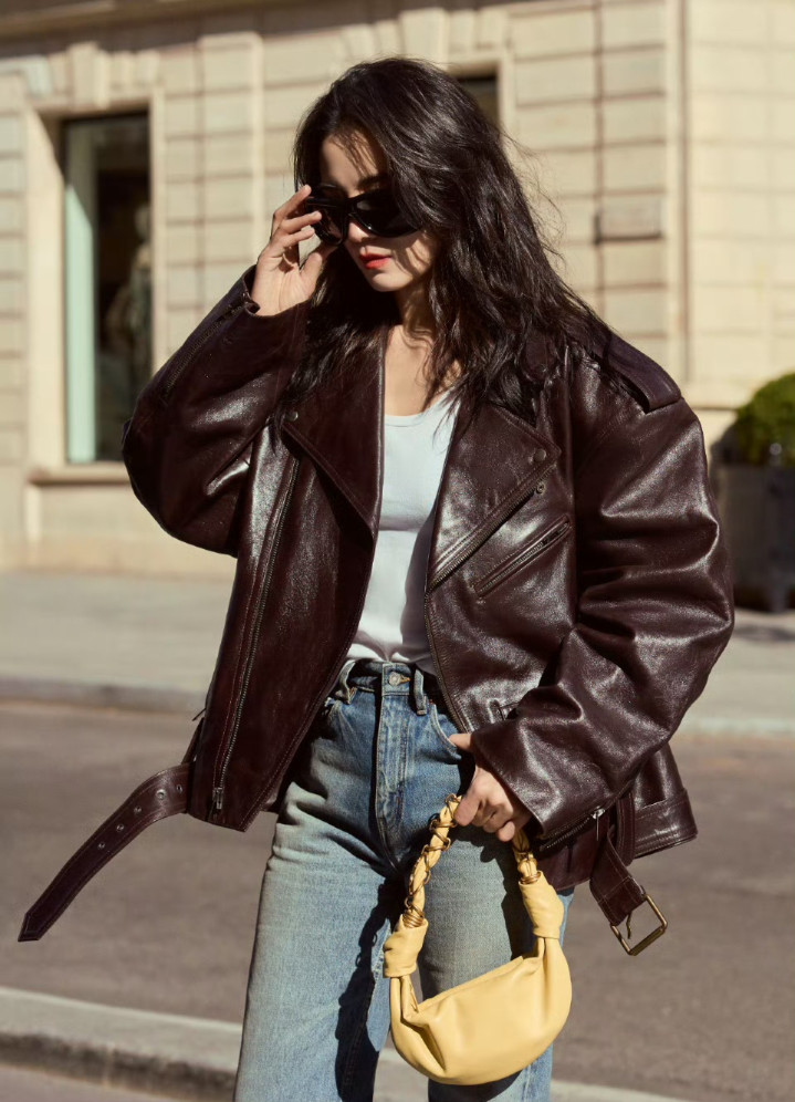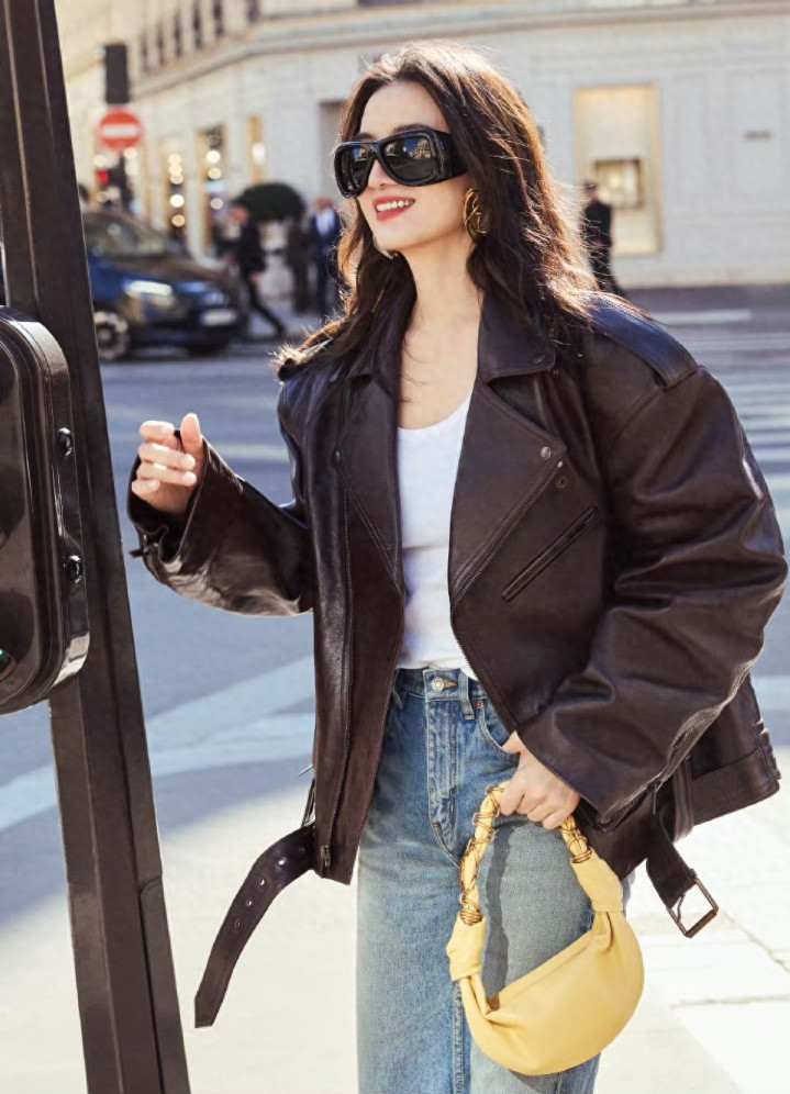 博亚体育(中国) 宋佳巴黎街头衣服皮衣牛仔裤, 又飒又好意思, 回头率太高了