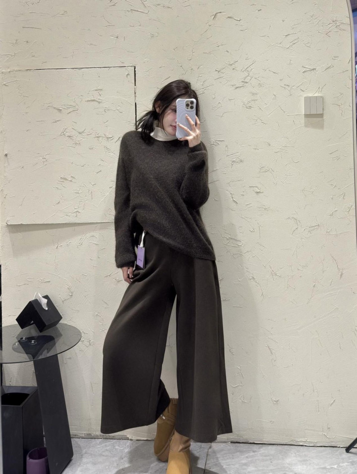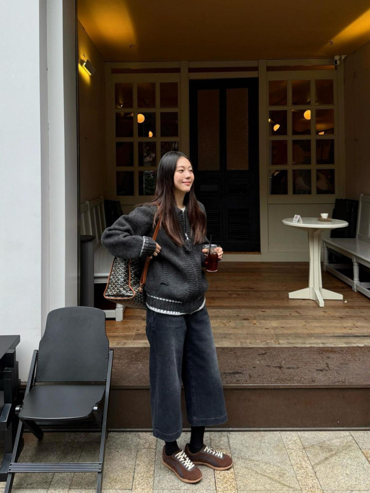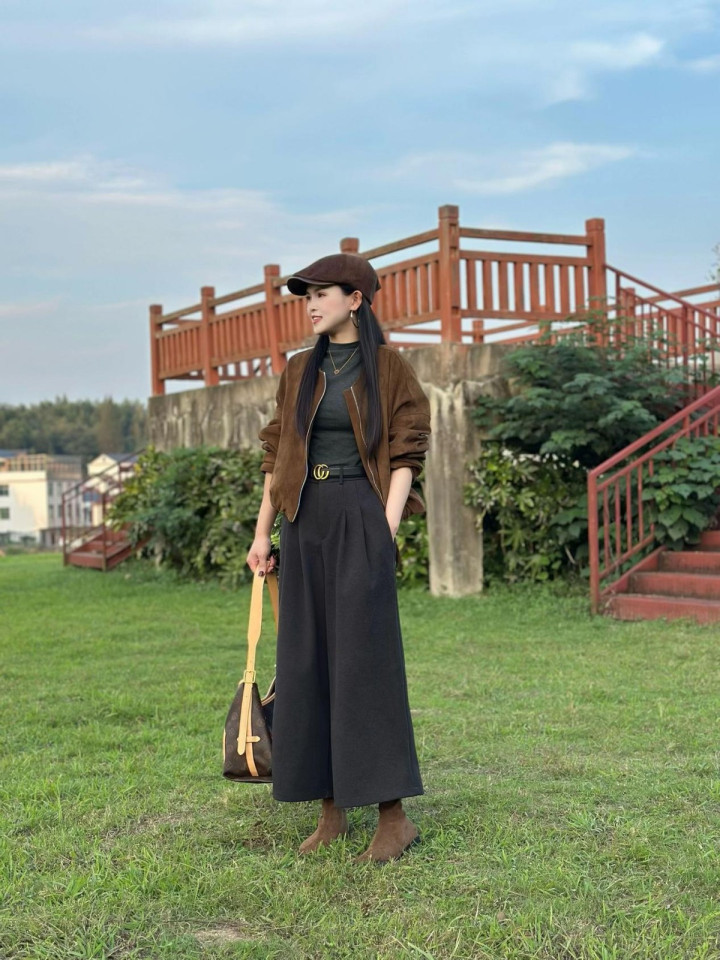 带点挺阔感的八分阔腿裤,长度刚好显现脚踝位置。但为了御寒,提议宇宙不错在内部搭配一条弹力好的裤袜,和裤装无缺衔尾,再配双同色系的勃肯鞋,讲究又显高。