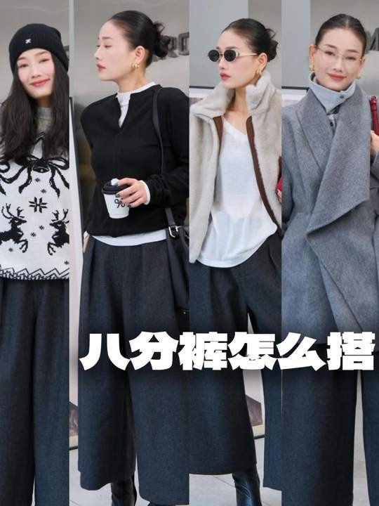 1、遴荐阔腿立体的八分裤,愈加讲究有型