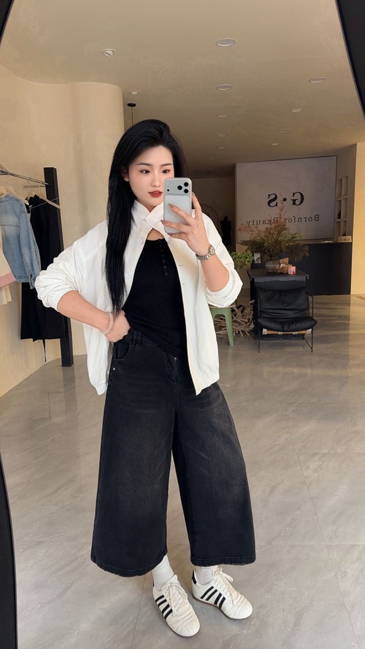 泛泛穿搭如故要走安闲路子。牛仔材质的八分阔腿裤,搭配立领预备的白色薄衬衫,把领子立起来穿,更有造型感博亚体育app中国官方入口,内搭修身真诚衫,舒截超越高,袖子挽起来愈加超脱超逸,满满的浮松感。
