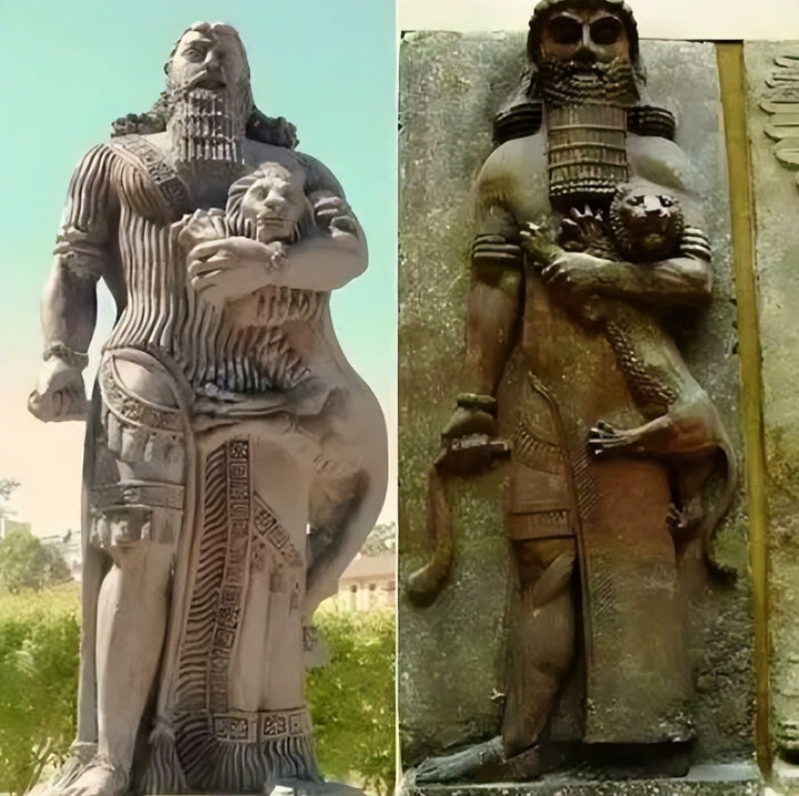 为什么会有这么的雕像存在?左边是古代亚述浮雕中的吉尔伽好意思什,右边是一个作风神似的当代形象。是偶合,照旧某种咱们尚未领路的传承?