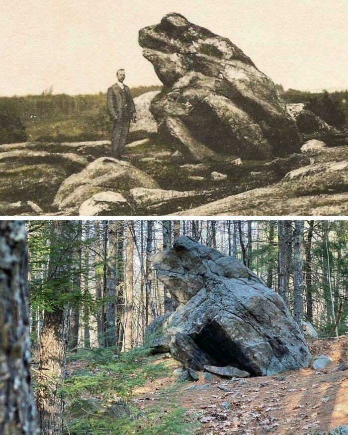 见过这个吗?新罕布什尔州的“青蛙石”,左边是它多年前神似青蛙的样式,右边是它在风雨侵蚀后如今的式样。时辰,才是最有劲量的雕琢家。