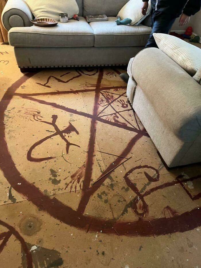 又名男人在重新装修房屋时,打开地板,发现了这个被画在地板反面的艰深涂鸦。有东说念主知说念这是什么根由吗?